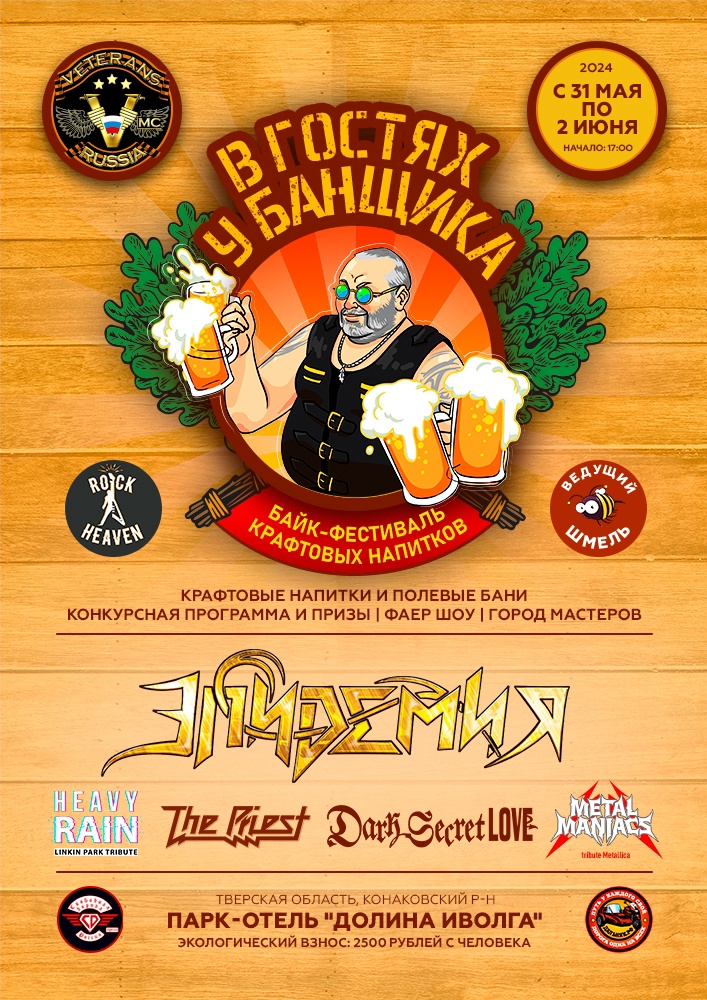 Вас ждет приятный отдых в атмосфере живой музыки: Эпидемия, Dark Secret Love, Metal Maniacs - Metallica Tribute, Heavy Rain - Linkin Park tribute, The Priest - Judas Priest Tribute, Ledstar Band, Волчья Сотня, Австерия, Kailas Rock, Deeptown, FunDay и другие