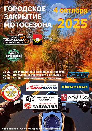 Лето сливается – но мы остаемся! Ты достаточно поколесил - пора делиться впечатлениями, набираться сил и копить на новые поездки. Да и твой байк уже просится на большое ТО и требует новые шины. Отметим КЕМЕРОВСКОЕ ЗАКРЫТИЕ МОТОСЕЗОНА -2025 вместе!!!